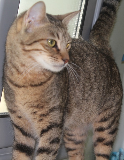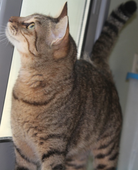 Madonna has a lively nature. She is always on the lookout for friends around the cat house.
